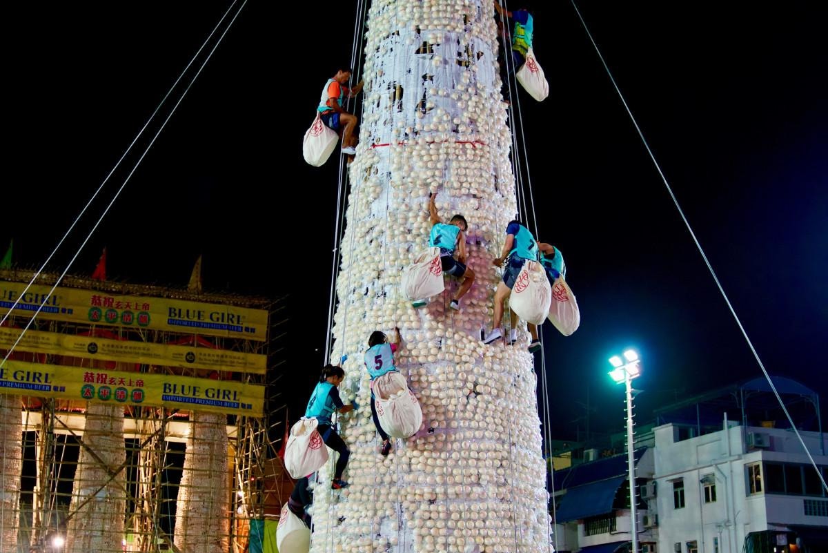 Nisan-Mayıs döneminde kutlanan festival, dev bambu kulelere tırmanarak küçük çörekleri kapmaya çalışan katılımcıları bir araya getiriyor.