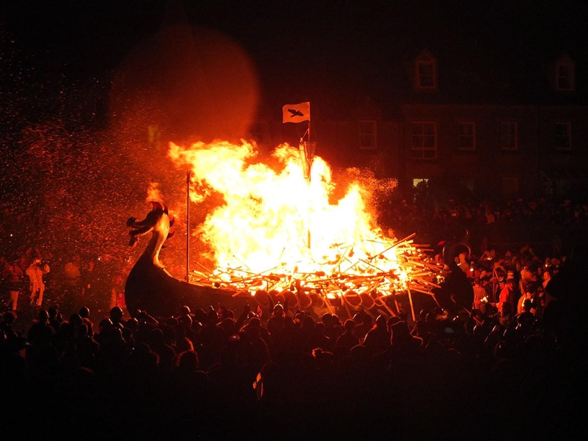 Lerwick’te düzenlenen Viking kültürü festivalinde, Ocak - Mart aylarında meşale yürüyüşü ve ateş gösterileriyle kutlama yapılıyor.