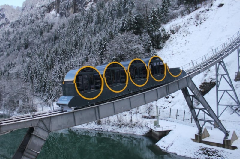 Stoosbahn, İsviçre Alpleri’nin sarp yamaçlarında hizmet veriyor. Dünyanın en dik füniküleri olarak kabul ediliyor.