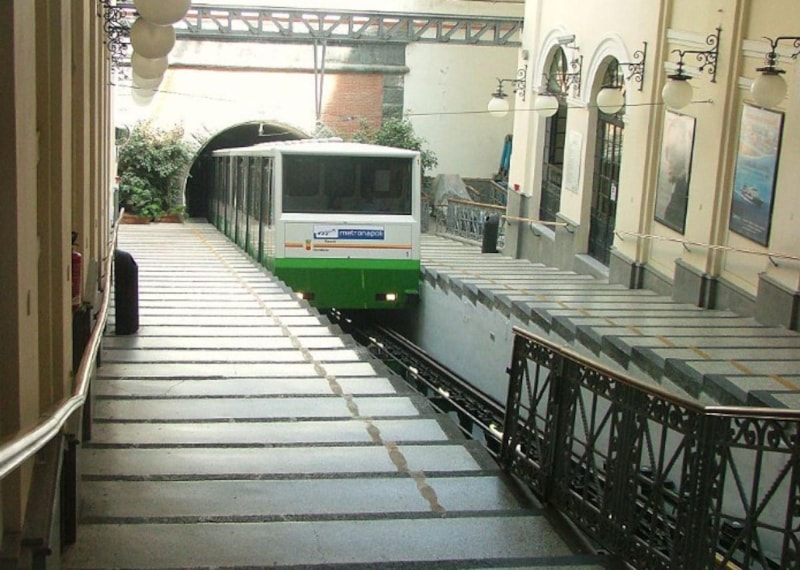 Napoli’nin şehir içi ulaşımında önemli bir rol üstlenen Funicolare Centrale, deniz seviyesinden tepelik Vomero semtine kadar uzanıyor.