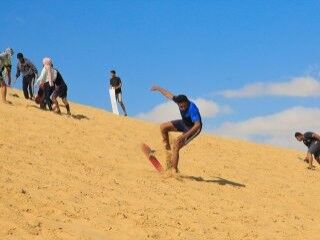 Altın kumda hızı saatte 60 kilometreye ulaşıp adrenaline tavan yaptıran son derece keyifli kum kayağı deneyimini; kayak, başlık, gözlük, kum çorabı ve uygun tişört gibi kolayca sahip olunabilecek araçlarla yaşayabilirsiniz.