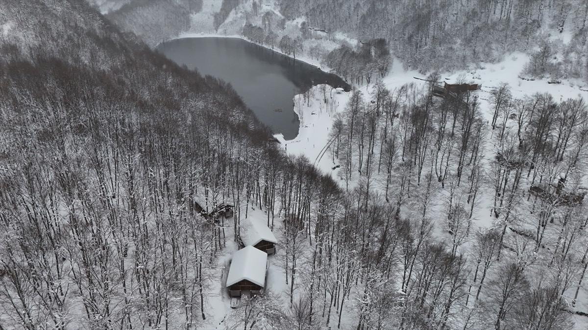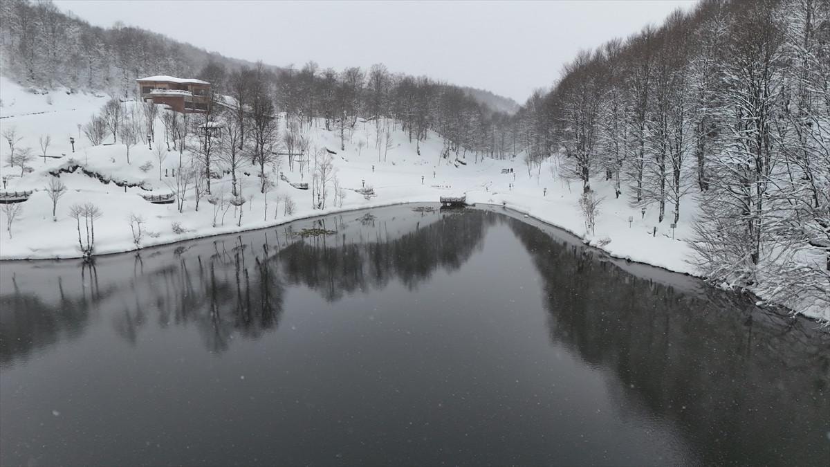 Karla kaplanmış tabiat parkı, havadan çekilen görüntülerle de gözler önüne serildi.