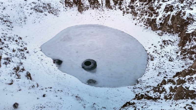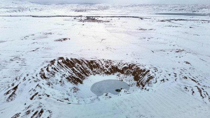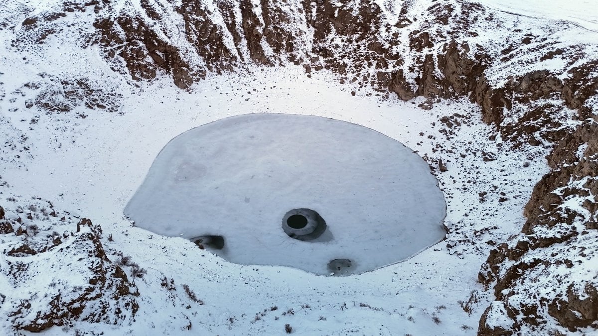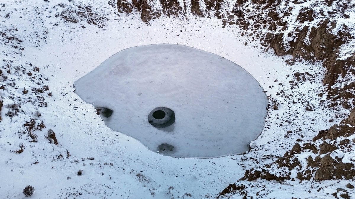 Canova köyüne yaklaşık 2 kilometre uzaklıkta, geniş bir düzlük içerisinde yaklaşık 100 metrelik çukurda yer alan Kızılçan Gölü, Sivas’ın en büyük krater göllerinden biri olarak biliniyor. Son günlerde etkili olan soğuk hava nedeniyle göl yüzeyi buzla kaplanırken, çevrede kar kalınlığı yer yer 30 santimetreye ulaştı.