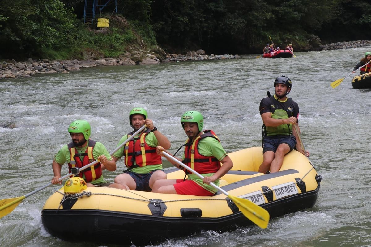 Serinlemek ve adrenalin dolu anlar yaşamak isteyenler, Rize’nin Ardeşen ilçesindeki Fırtına Deresi’nde düzenlenen yaklaşık 10 kilometrelik rafting turlarına katıldı. Ziyaretçiler, ekipler tarafından verilen temel eğitimlerin ardından deredeki zorlu parkurlarda keyifli ve heyecan dolu anlar yaşadı.