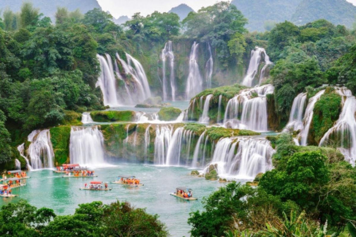 Çok katmanlı çağlayanlar ve yemyeşil kireçtaşı teraslarla dikkat çeken şelale, hem suyun formu hem de çevresindeki pirinç tarlalarıyla benzersiz bir atmosfer sunuyor.