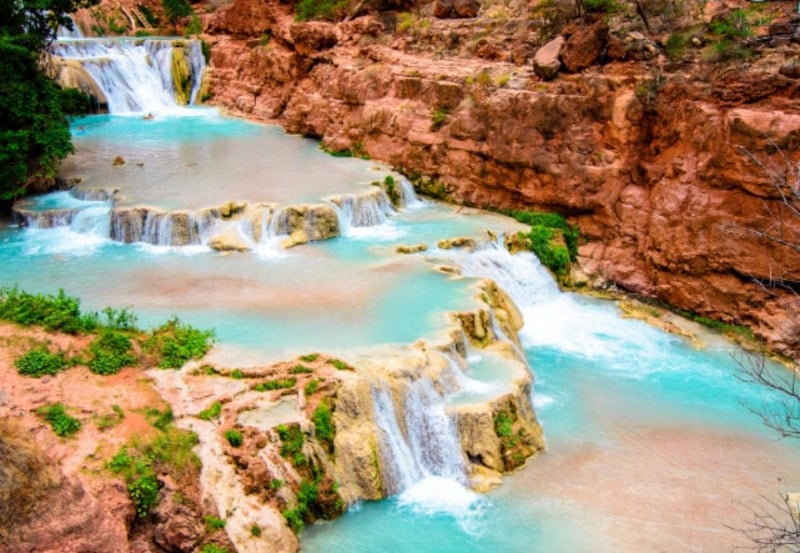 Parlak turkuaz renkli suyu ve kırmızı kaya duvarlarıyla Havasu, hem renk kontrastı hem de doğal havuzlarıyla dikkat çekiyor.