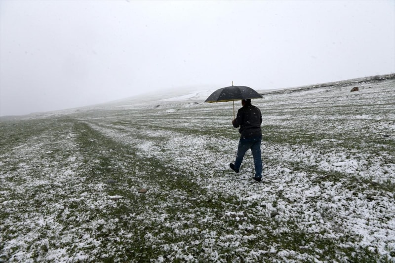 İlçeye yaklaşık 15 kilometre mesafedeki, 2 bin 368 metre rakımlı Handere Geçidi'nde kar kalınlığı 10 santimetreye ulaştı. Kar yağışı, bölgenin doğal dokusunu hızla değiştirdi; sarıçam ormanları, dağ çiçekleri ve yeşeren bitkiler kısa sürede beyaz örtüyle kaplandı.