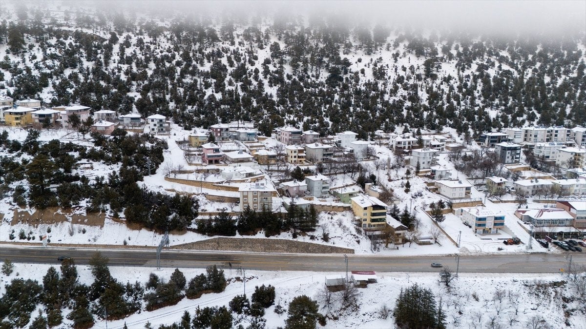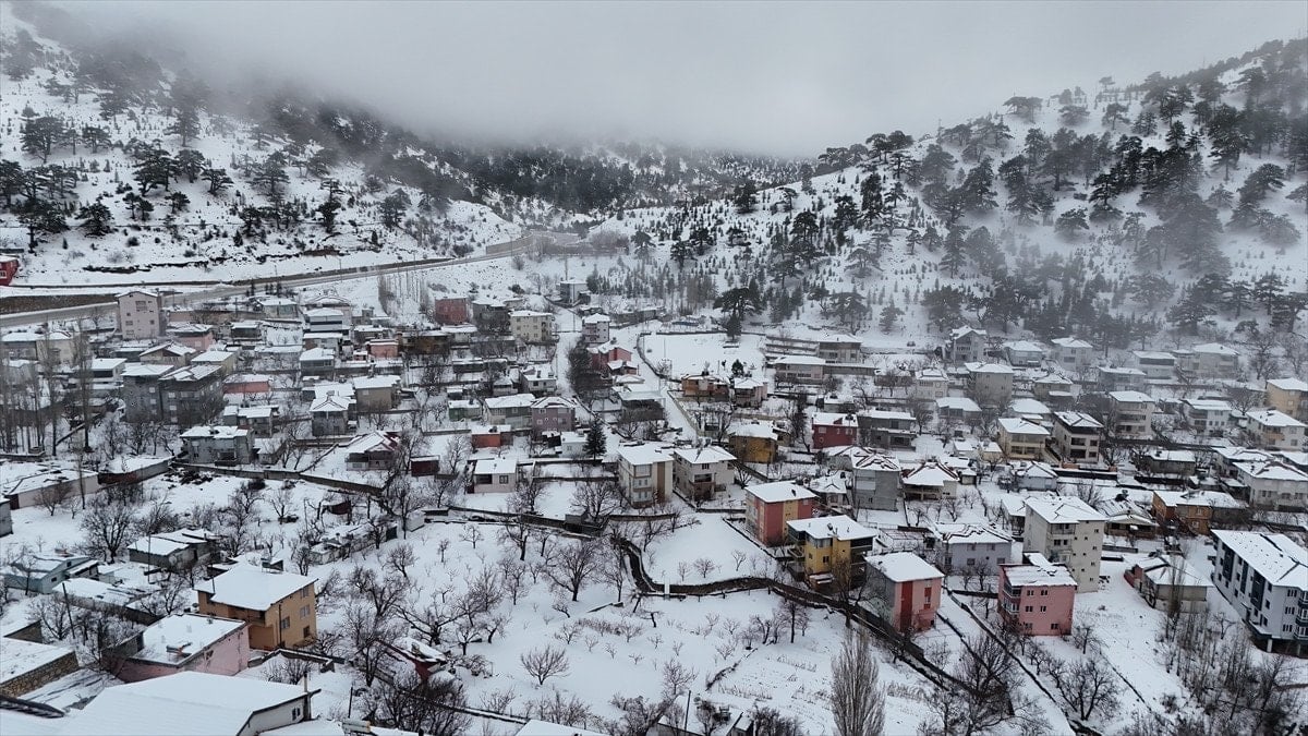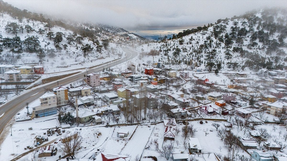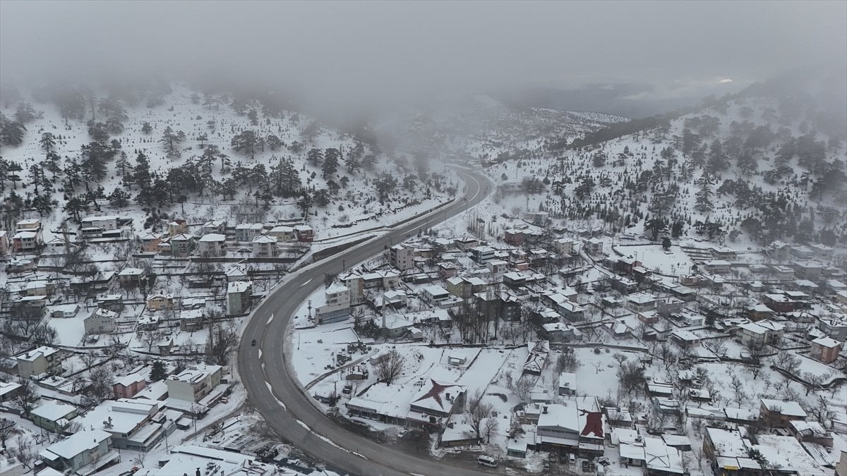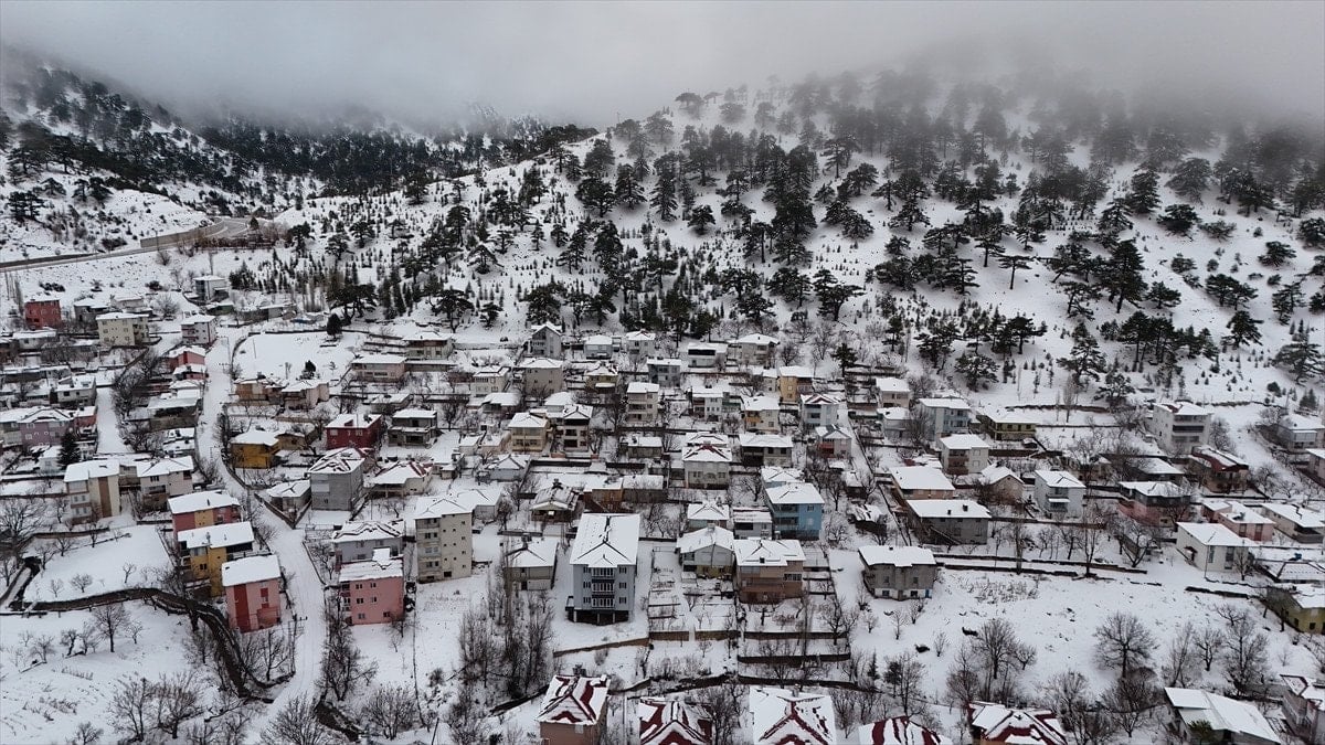 - Bölgedeki kar manzarası, drone ile havadan görüntülenerek kartpostal gibi kareler oluşturdu.