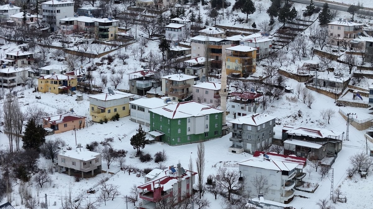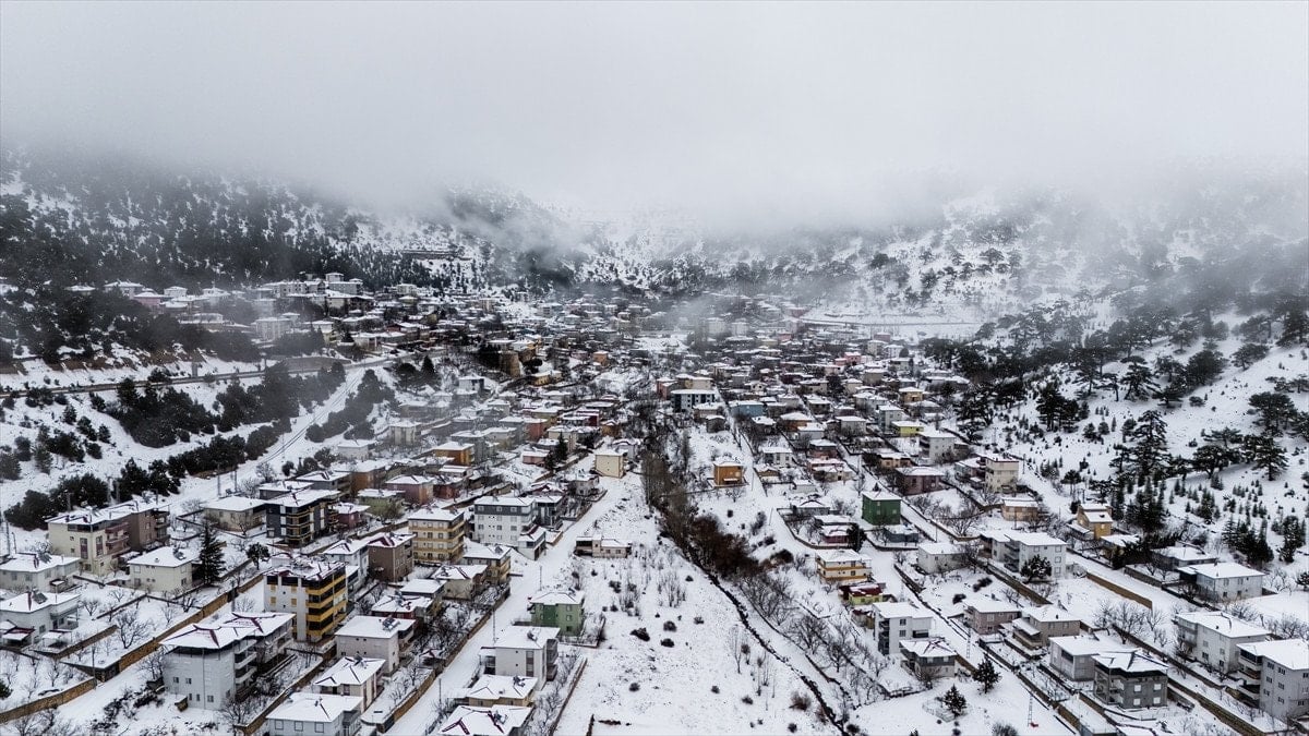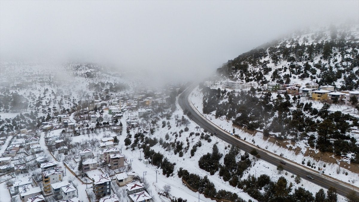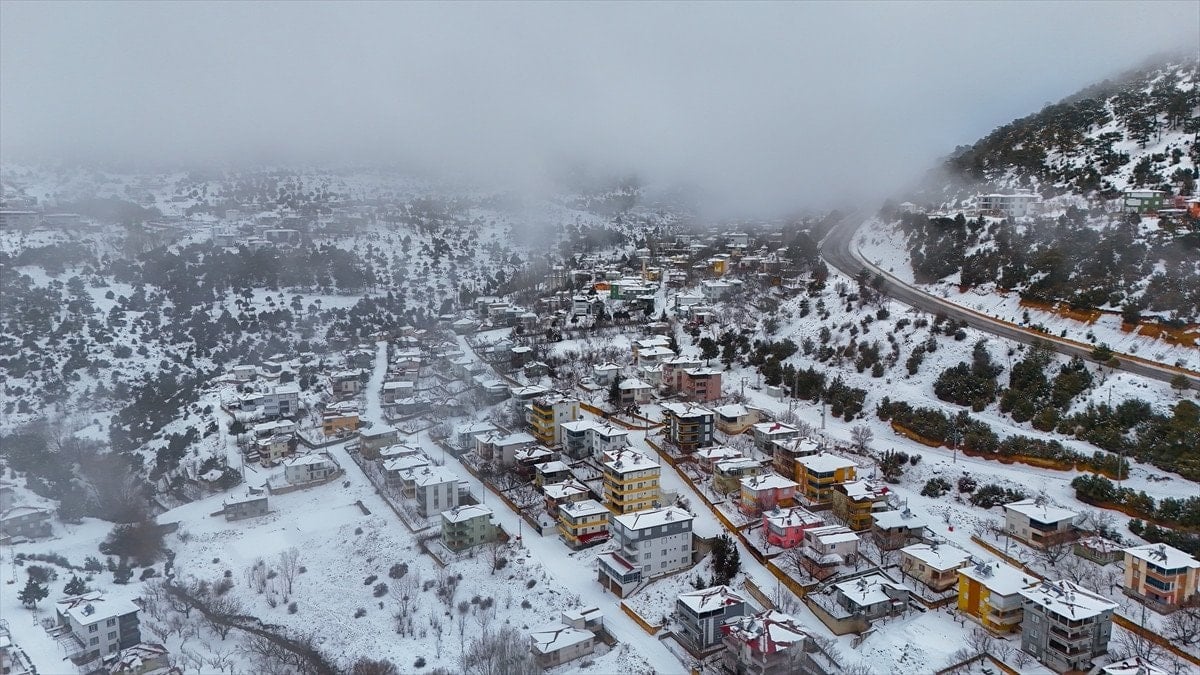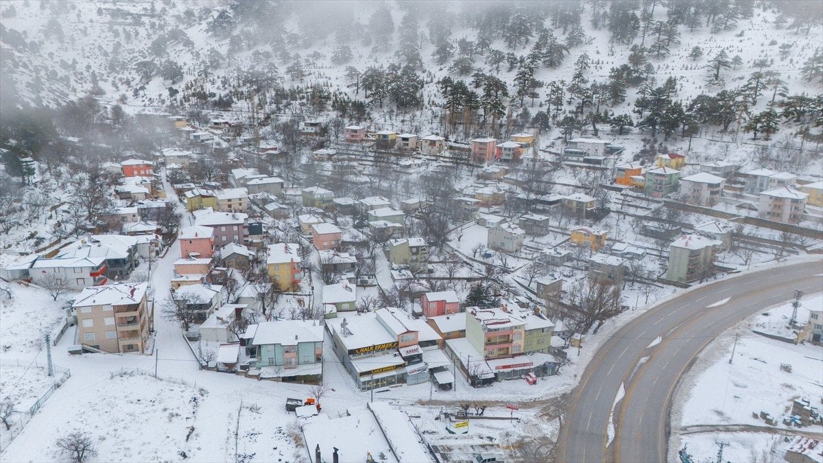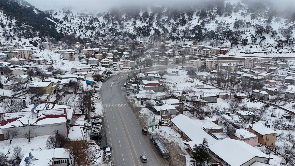 - Bölgedeki kar manzarası, drone ile havadan görüntülenerek kartpostal gibi kareler oluşturdu.