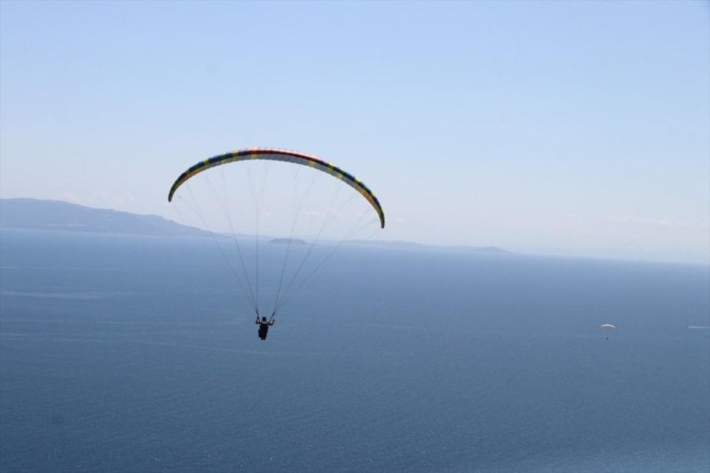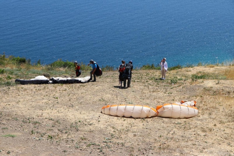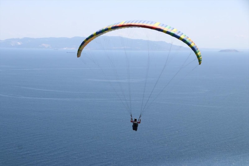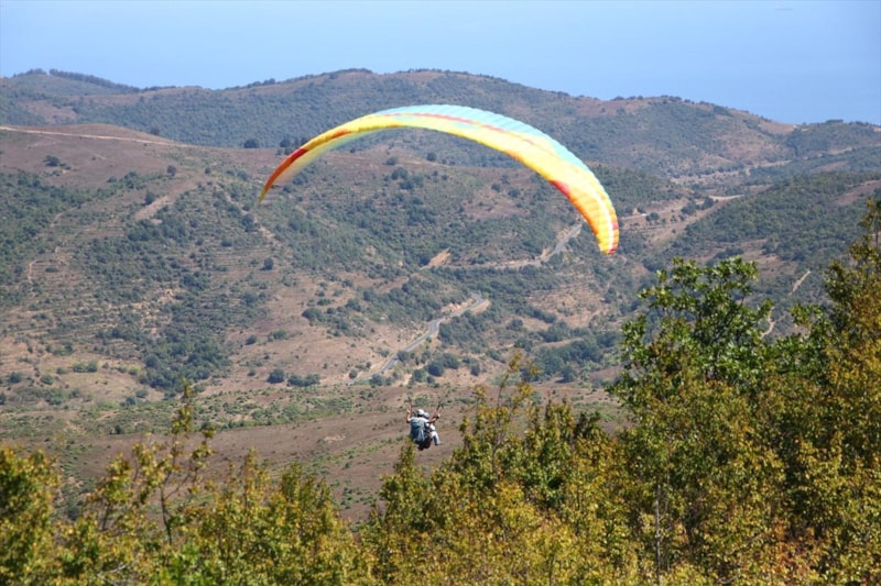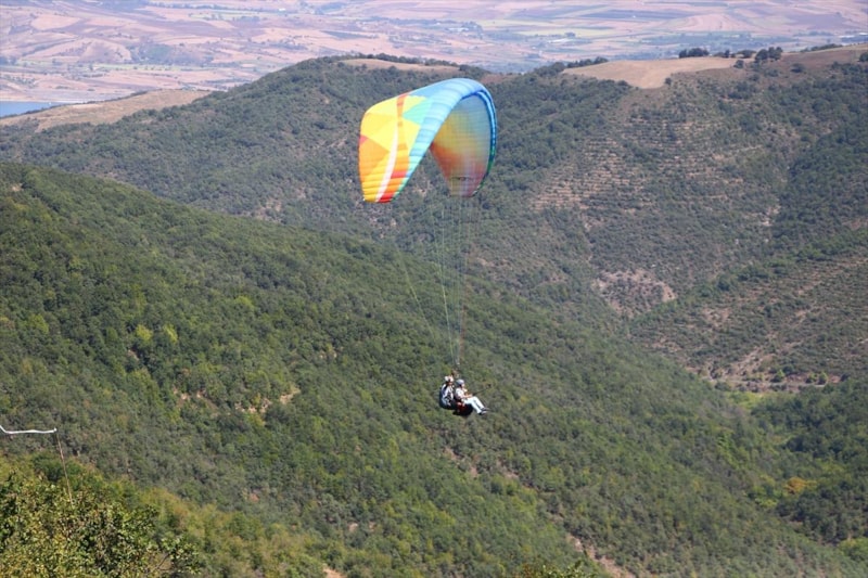 Tekirdağ'da, Ganos Dağı eteklerindeki ormanların Marmara Denizi ile bütünleştiği Uçmakdere, yamaç paraşütü tutkunlarını gökyüzüyle buluşturuyor.