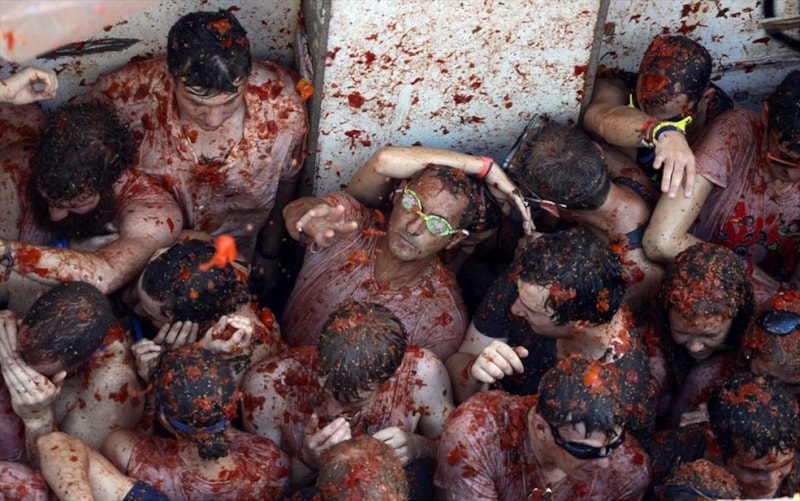 İspanya’nın Valencia bölgesindeki Buñol kasabasında her yıl ağustos ayının son çarşambasında düzenlenen La Tomatina festivali sadece ezilmiş domateslerle yapılıyor. Bu renkli festival, dünyanın dört bir yanından binlerce turisti “domates savaşı” için bir araya getiriyor.