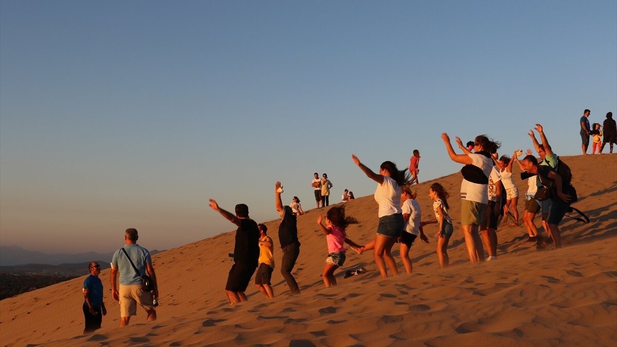 Yeşilçam'ın birçok filmine de ev sahipliği yapan kum tepelerinde, atlı ve develi safari turlarına da katılan turistler, ardından denize girerek unutulmaz bir gün yaşıyor.