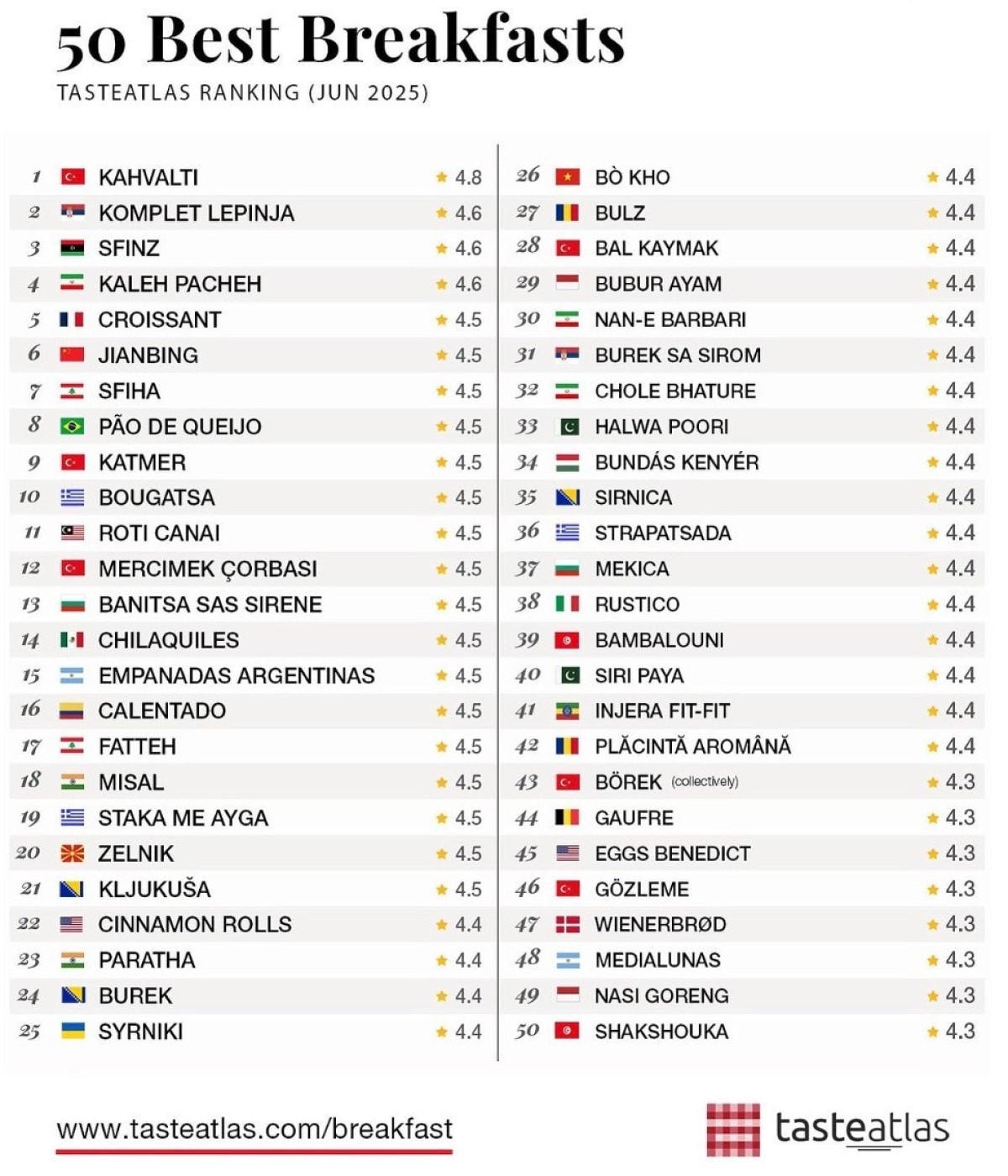 TasteAtlas’ın listesi, Türk kahvaltısının sadece yerel bir gelenek olmadığını, dünya mutfağında güçlü bir temsil hakkı kazandığını ortaya koyuyor.