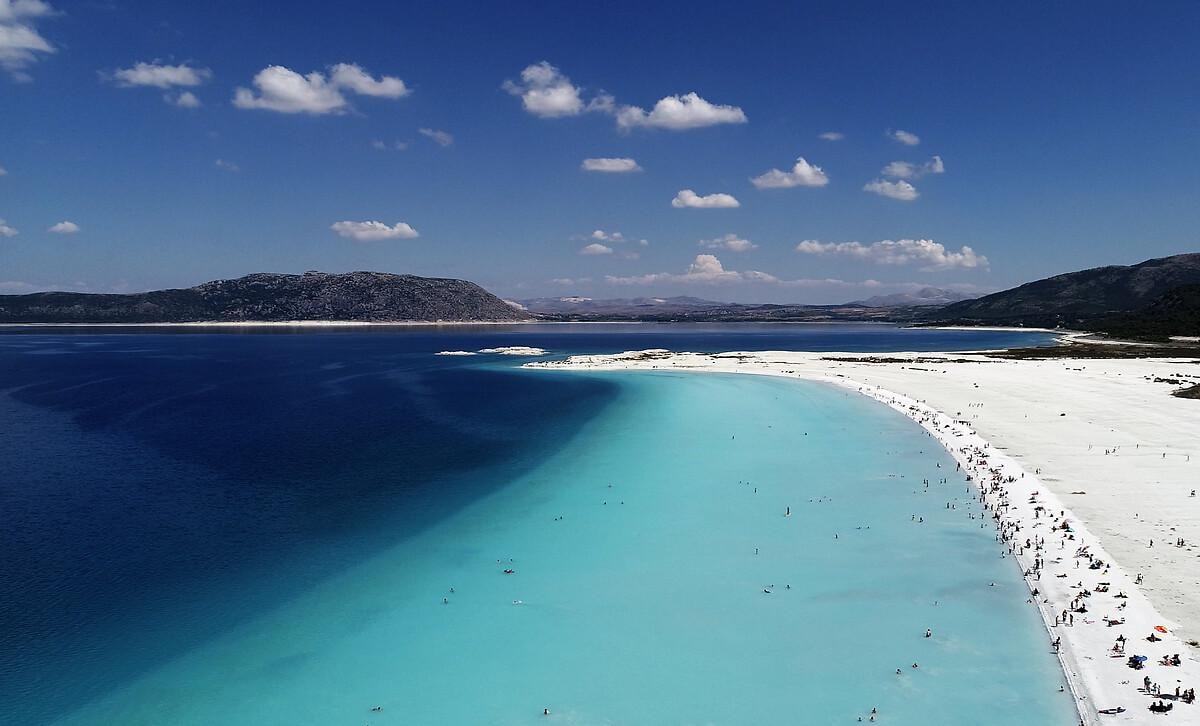 “Türkiye’nin Maldivleri” olarak tanımlanan Salda Gölü, turkuaz suyu ve beyaz kumsalıyla sosyal medyanın en popüler adreslerinden biri olmayı sürdürüyor.
