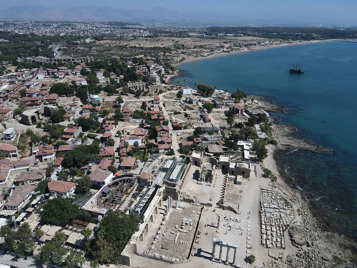 Sahil manzarasıyla Side, Akdeniz’in en gözde tarihi duraklarından biri olarak sosyal medyada öne çıkıyor.