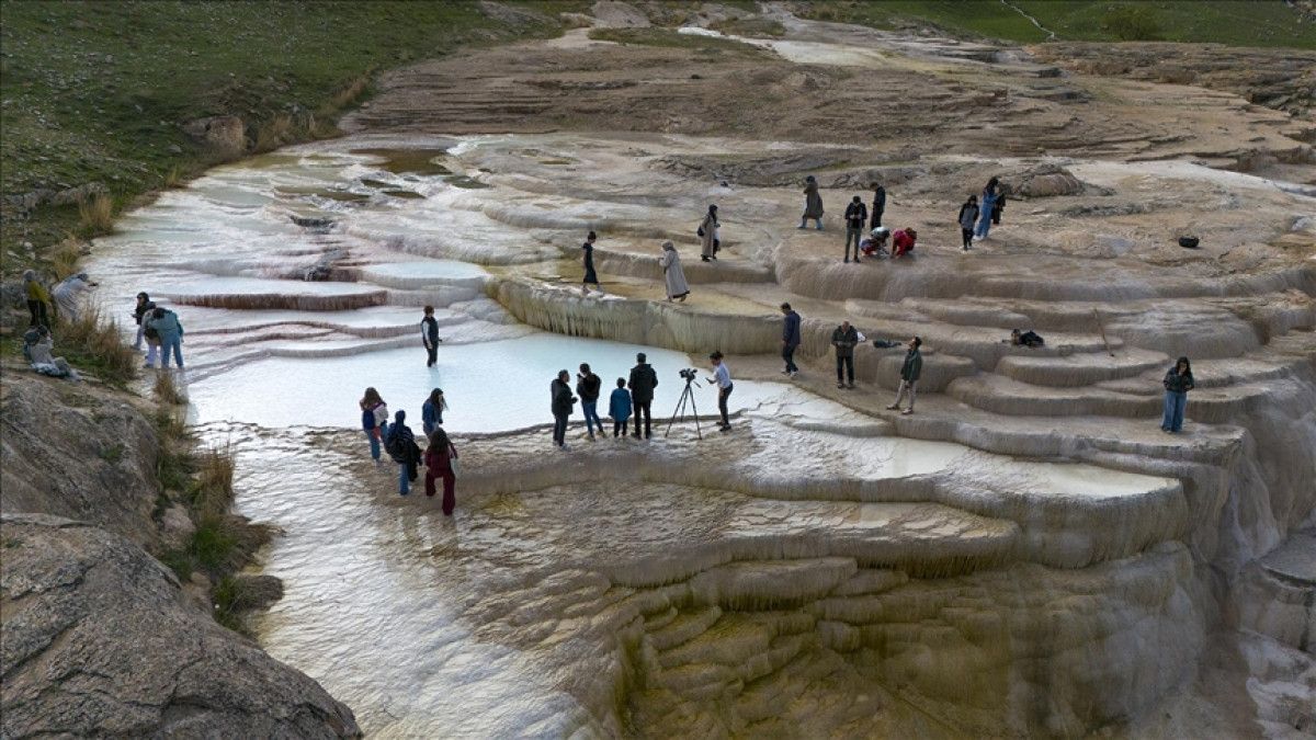 Van şehir merkezine yaklaşık 150 kilometre mesafede, Başkale ilçesine bağlı Dereiçi Mahallesi’nde yer alan travertenler, kireçtaşından oluşan beyaz terasları ve mineralli su havuzlarıyla görenleri kendine hayran bırakıyor. Pamukkale’yi andıran bu doğal oluşum, baharın gelişiyle birlikte yemyeşil vadilerle çevrelenerek adeta bir doğa şölenine dönüşüyor.