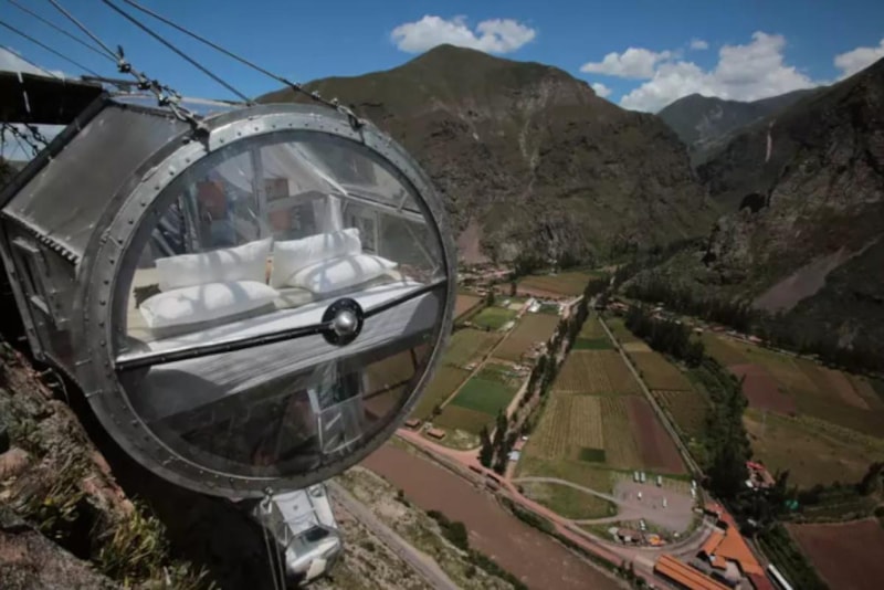 Gökyüzüne asılı otel odaları, Peru’nun turistik merkezlerinden Cusco’ya yakın bölgelerde konumlanıyor. Machu Picchu ve çevresindeki tarihi alanlara erişim kolaylığı, bu bölgede konaklamayı cazip kılıyor.