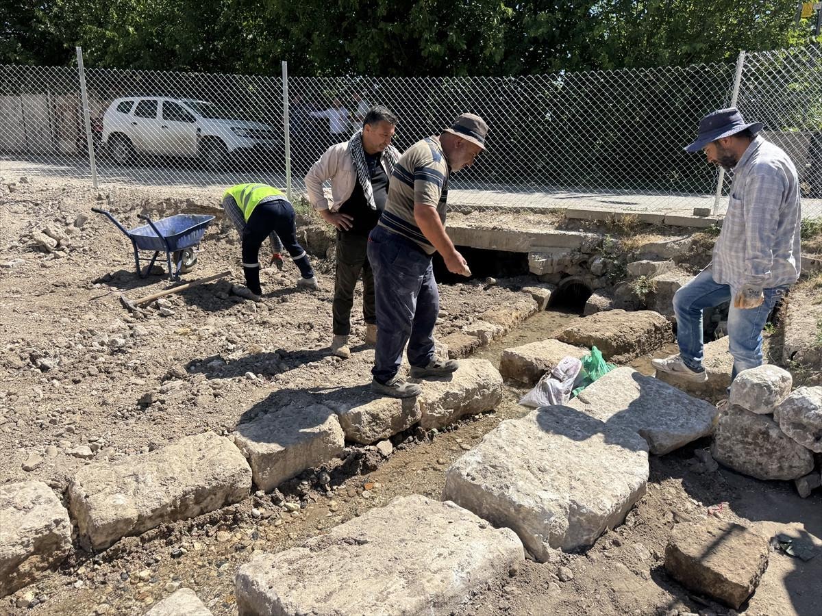 Antik kentin merkezinde bulunan Roma Çeşmesi’nin ön kısmında yapılan kazı çalışmaları, çeşmenin tarihî dokusunu ortaya koydu.