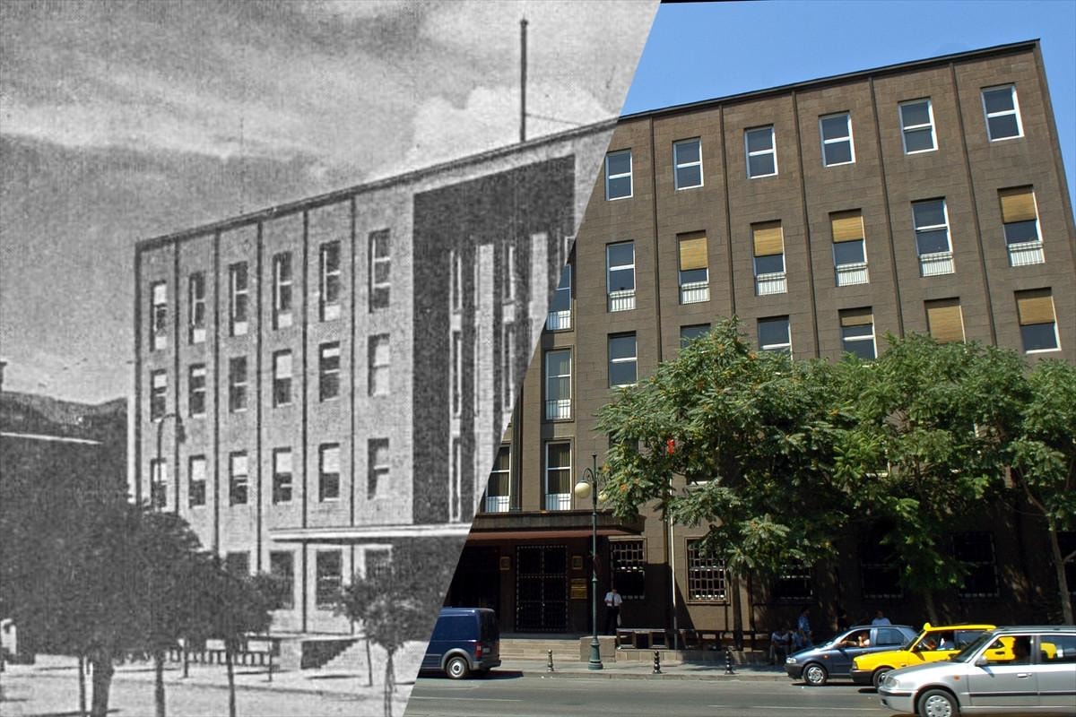 Atatürk Bulvarı'nda bulunan PTT Pul Müzesi ise 1940 tarihli siyah-beyaz fotoğrafta Emlak ve Eytam Bankası tarafından kullanıldığı haliyle yer alıyor.