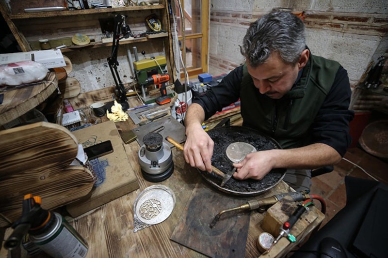 İnce işçilik isteyen sanatı 10 yıldır sürdüren Çukurkaya, genellikle müzelerden ve koleksiyonerlerden gelen talepler üzerine çalışıyor.