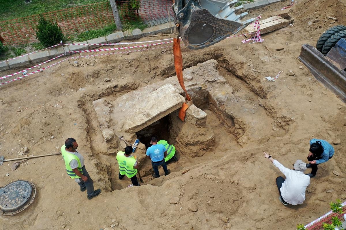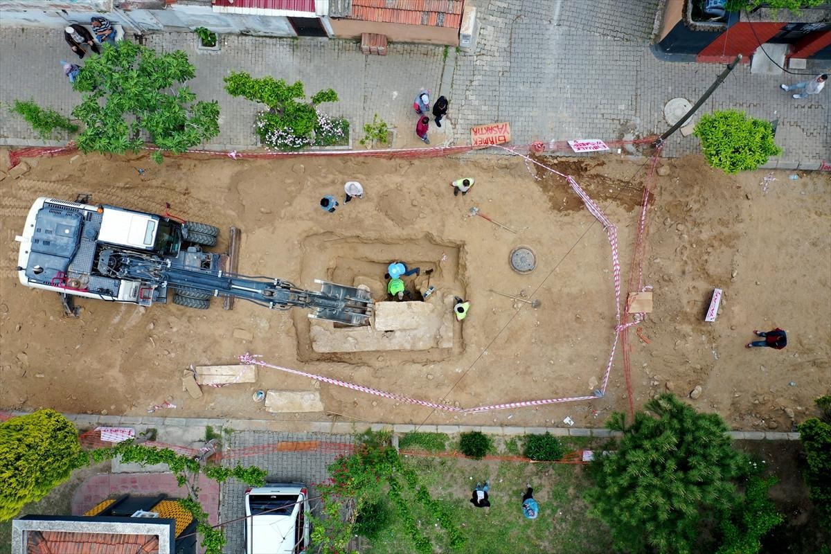 Drone ile havadan da görüntülenen alanda, Roma dönemine ait olduğu tahmin edilen bir "oda mezar" yapısına rastlandı. Kazı sırasında, büyük taş blokların arasına yerleştirildiği anlaşılan kremasyon (ölüm sonrası yakılan kişilere ait) küpleri gün yüzüne çıkarıldı. Bulunan küpler, detaylı inceleme için Aydın Müze Müdürlüğü'ne götürüldü.