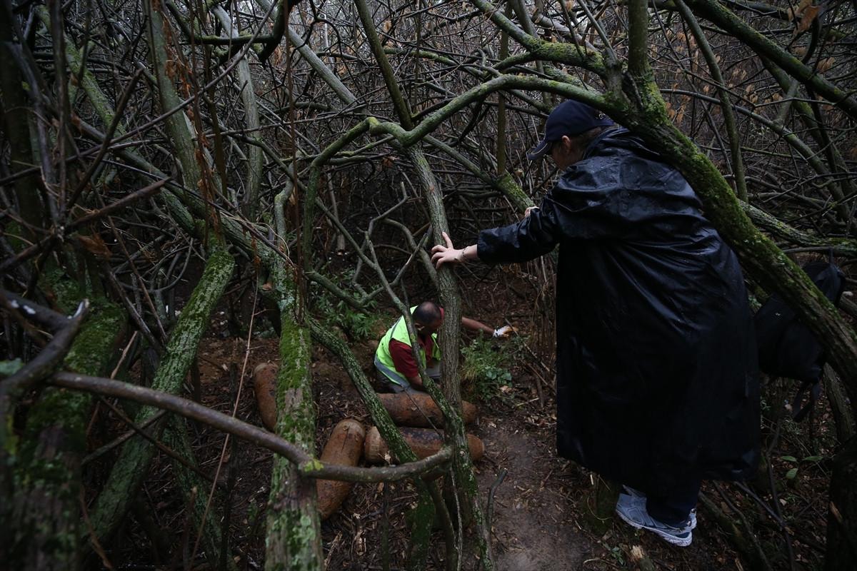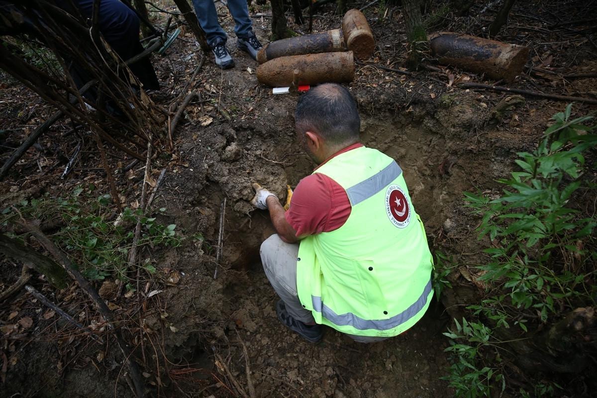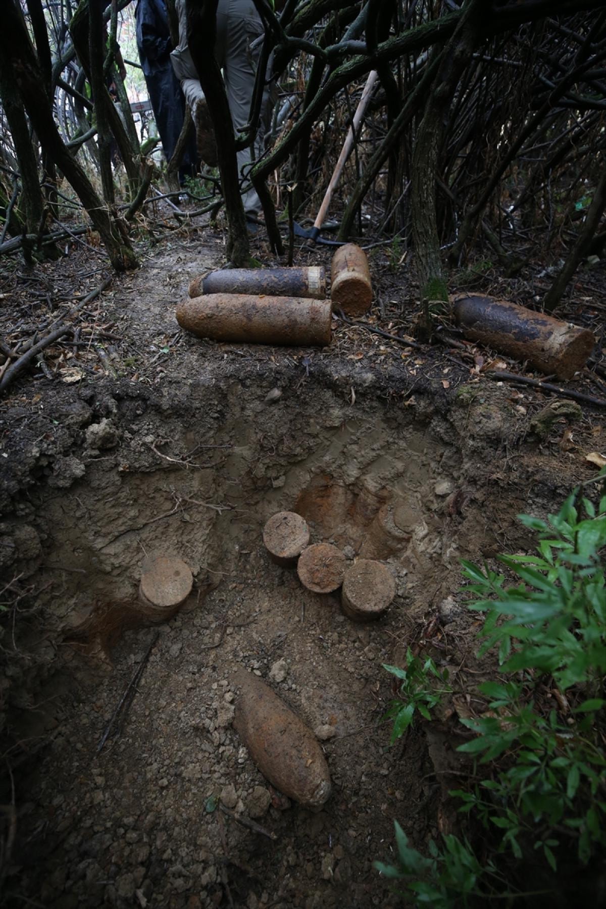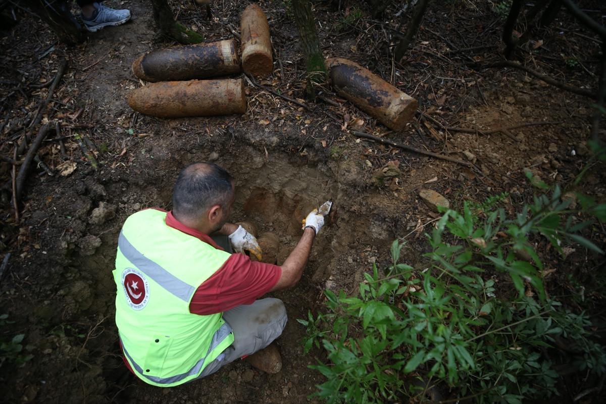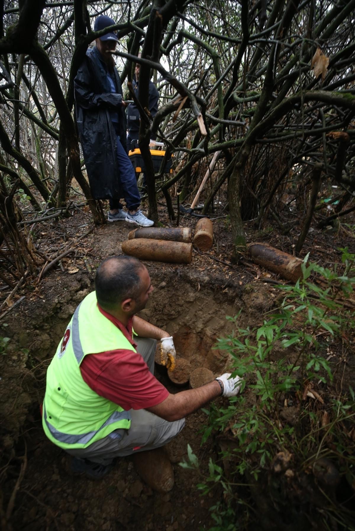 Top mermilerinin olduğu alanda yürütülen çalışmalarda, bir kısmı toprağa gömülü vaziyette 150 milimetrelik 18 adet top mermisi tespit edildi.