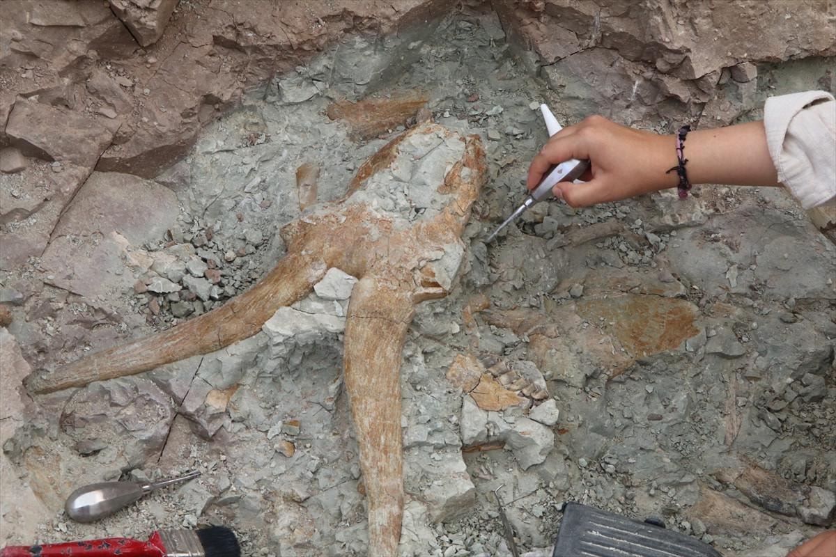 Hipparion dediğimiz atların iki türüne ait hem uzun vücut kemik parçaları hem kafa parçaları çıkarılıyor. Gergedanlardan iki yavru gergedan kafatasını çıkardık. Yine bizim hortumlular dediğimiz günümüzün fillerinin atalarından türlere ait iskeletler, bizon benzeri büyükbaş boynuzlularla ilgili fosiller, zürafalarla ilgili buluntular, vücut iskeletleri bol miktarda çıktı. Onun dışında dağ keçilerine benzeyen türlere ait fosillerimiz var. Daha önceki yıllarda çıkan fosillerin devamı niteliğinde fosiller geliyor. Bunların hepsi 8,5 ile 7 milyon yıl arasında yaşamış türler. Bütün bu türler, bir katastrofik olay diyoruz, bir felaket sonrası kitle halinde ölen hayvan türlerine ait fosiller. O nedenle de bütün iskelet olarak değil de biraz karışık olarak birbirlerinin üstünde farklı türlerle ilgili buluntular şeklinde ele geçiyor ve aslında hem dünyanın hem ülkemizin en zengin tür çeşitliliğine sahip bir alan burası. 43 ayrı türümüz var, onun üzerinde hayvanlarda ailelere ait dediğimiz gruplar var. 43 türün içerisinde yırtıcılar, çift tırnaklılar, tek tırnaklılar var. Bugüne kadar toplan 4 bin 100 civarında fosil var şu anda. Bu tabii ki tanımlanabilir olanlar. Bir de bizim numarasız olarak elde ettiğimiz fosiller var. Yani 5 binin üzerinde fosilimiz var burada aslında.
