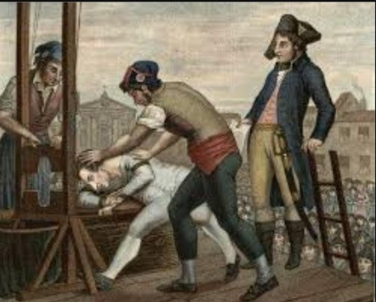 Encyclopedia Britannica’daki “Guillotine” maddesinde anlatılanlara göre; bu kan dökmeye meraklı grup, özellikle Terör Dönemi'nde (1793-1794) on binlerce insanı giyotinle idam etmişti. Devrimi yapan eşkıyalar, tüm vatandaşları infazda “eşit” kılacak ve infazı saniyenin onda biri kadar kısa bir süreye indirecek “insancıl” bir yöntem arayışına girmişti. Sonunda, Fransız Ulusal Meclisi’nde yer alan Dr. Joseph Ignace Guillotin, sonrasında adıyla anılan giyotin yöntemini önermiş, sistemi ise cerrah Antoine Louis tasarlamıştı. İlk giyotini yapan kişi de Tobias Schmidt adında bir piyanist ve marangozdu. Schmidt, makinenin bıçağının yatay değil, eğik olması gerektiğini belirterek, eğik bıçağın boyun kemiğini daha kesin ve kısa sürede keseceğini söylemişti.