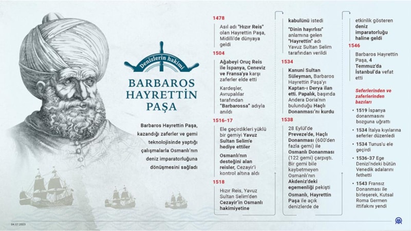 Denizcilerin piri olarak anılan Barbaros Hayrettin Paşa, aradan yüzyıllar geçse de tarihin en büyük denizcilerinden biri olarak anılmaya devam ediyor.