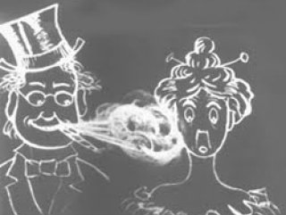 Görüntülerde şapkalı bir adam karakteri, puro dumanını kadının yüzüne yüzüne üflüyor. Çemberden atlayan köpek gibi basit konular işleniyor. Ardından farklı türde çizgi karakterler geliyor ekrana. Başka farklı görüntülere dönüşen farklı sahneleri görebilirsin. Her bir karakter birbirinden bağımsız.
