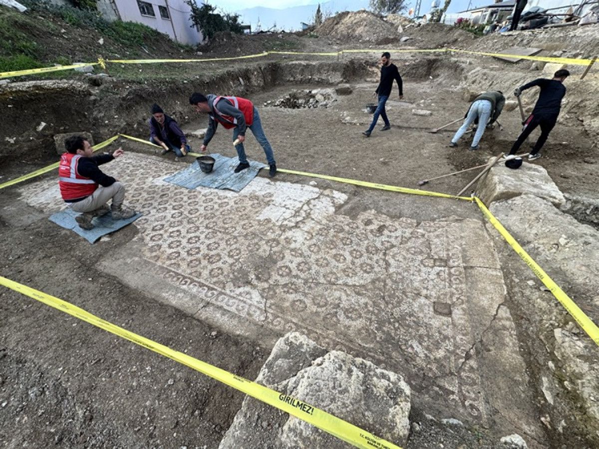 Mart ayından bu yana sürdürülen kazılarda, alanda üç ayrı noktada taban mozaiklerinin bulunduğu belirlendi. Yapılan çalışmalar sonucunda, milattan sonra 5. ve 6. yüzyıllara tarihlenen Geç Antik Çağ’a ait, 17,5 metre uzunluğunda ve Grekçe yazıt içeren geometrik desenli bir taban mozaiği tamamen gün yüzüne çıkarıldı.