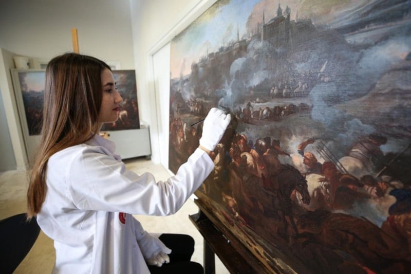 Restorasyonu yapılan eserler arasında 19. yüzyıl başlarına ait 'Viyana Kuşatması' bulunuyor. Bir de büyük boyutlu, dünyadaki önemli eserlerden biri bulunuyor. I. Abdülhamid dönemine ait anonim 'Soyağacı' tablosunun restorasyon süreci de atölyemizde yeni başladı. Bu eserin I. Abdülhamid dönemine ait üç 'Soyağacı' tablosundan biri olduğunu tespit ettik. Oldukça yıpranmış ve harap olmuş bir durumda atölyemize geldi. Restorasyon süreci de yeni başladı. 'Soyağacı', I. Abdülhamid döneminde getirilmiş bir eser ve çok kıymetli.