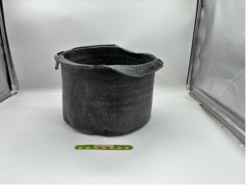 Açıklamada, bronz kabın iyi korunduğu konservasyon ve restorasyon çalışmaları sonucunda yüzeyinde yer alan çekiç izlerinin net şekilde gözlemlendiği vurgulandı.