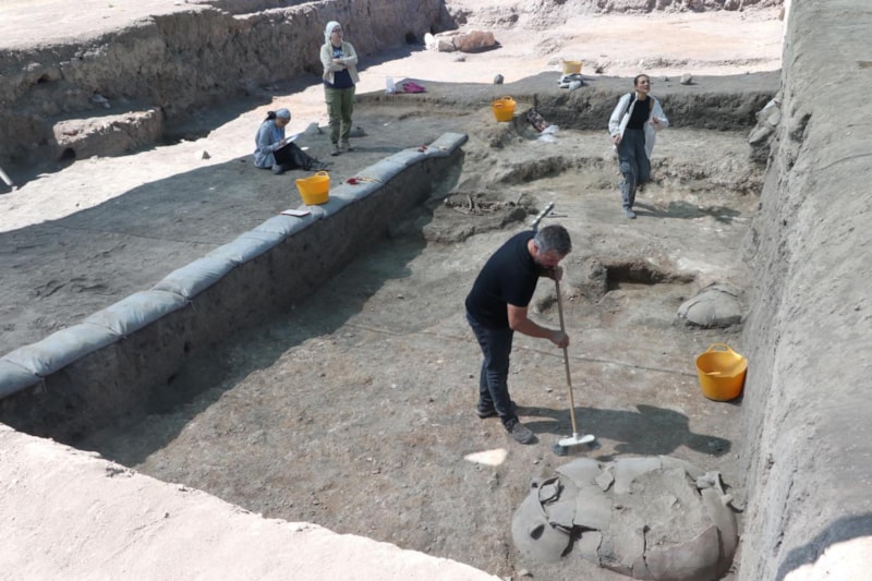 Prof. Dr. Türkteki, yerleşmeden yaklaşık 100 metre uzaklıktaki mezarlık alanında farklı mezar tiplerinin bir arada bulunmasının, farklı grupların bir araya geldiğini gösterdiğini söyledi. Mezar çeşitliliği arasında taş sanduka, kerpiç sanduka, çömlek mezar ve basit toprak mezarlar bulunuyor.