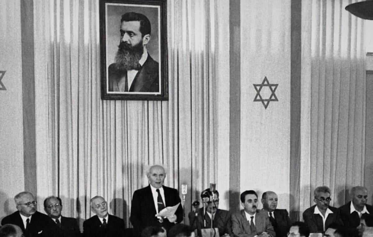 İsrail'in kurulduğunu ilan ettiğinde başının üzerinde bir tablo vardı. Bu portre, Theodor Herzl'e aitti. Buradaki mesaj, "Biz Theodor Herzl'in torunları olarak Abdülhamid'in torunlarını yendik, devletimizi kurduk. Siz bize toprak vermezseniz biz de sizi böyle yeneriz" şeklindedir.