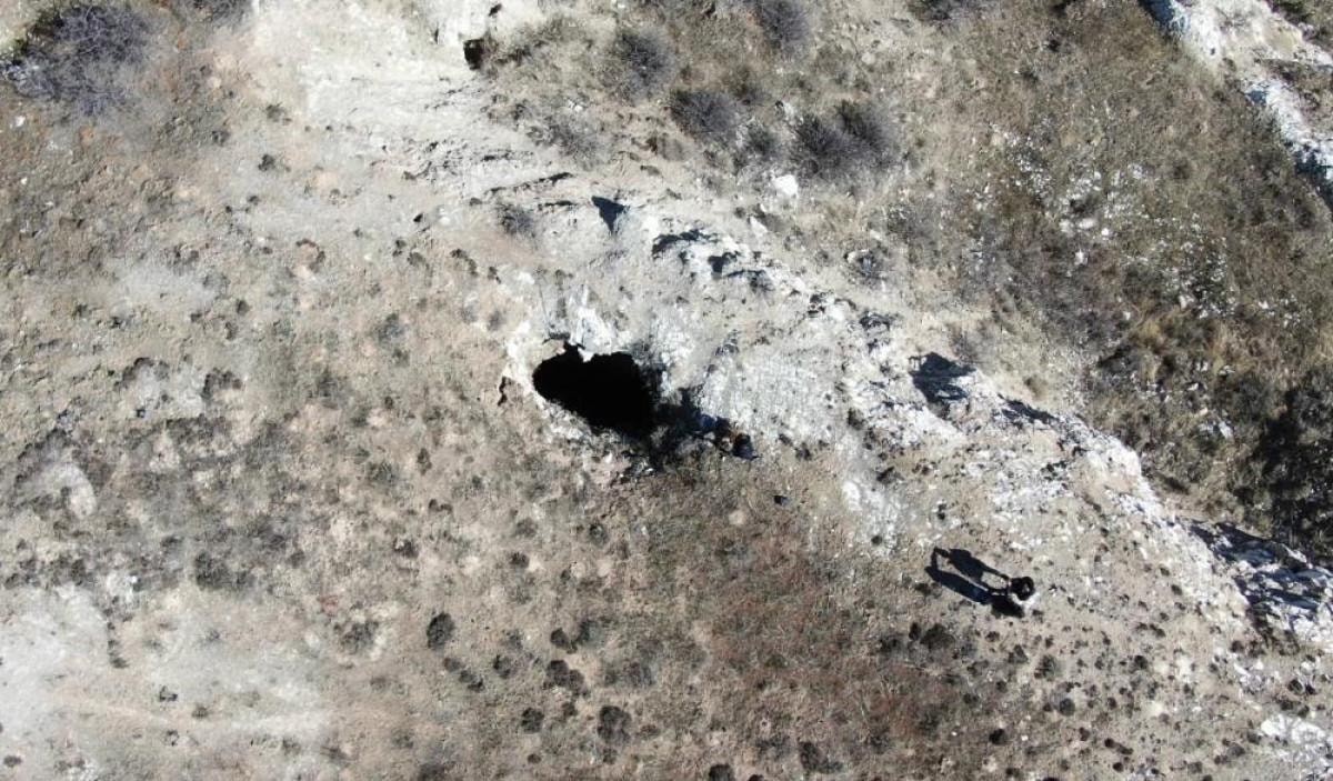 Yaklaşık olarak 5 metre genişliğinde ve 15 metre derinliğinde olan bu çöküntünün, bir mağara girişi olabileceği düşünülüyor.