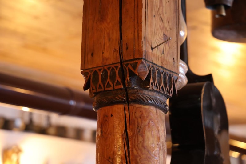 7 adet ardıç direği üzerine inşa edilen ve iki bölümden oluşan bu köy odası, birçok sembol ve anlamı da içinde barındırıyor. Ustalar tarafından 7 direk üzerine işlenen motifler, her biri farklı bir anlam taşıyor. 4 köşeyi temsil eden ve dört mevsimi simgeleyen motifler ile hayat çizgisi, o dönemin insanlarının misafirperverliğini ve kültürel değerlerini yansıtıyor.