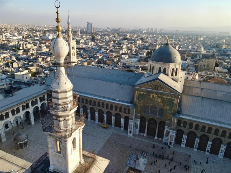 Öte yandan, hadisler ve yerel Şam geleneğine göre, Emevi Camii'nin bir minaresine Hazreti İsa'nın kıyamet günü öncesinde gökten ineceği ve Müslümanları bir araya toplayarak bir diriliş gerçekleştirileceğine inanılırken, tarih boyunca ihtişamını koruyan cami havadan görüntülendi.