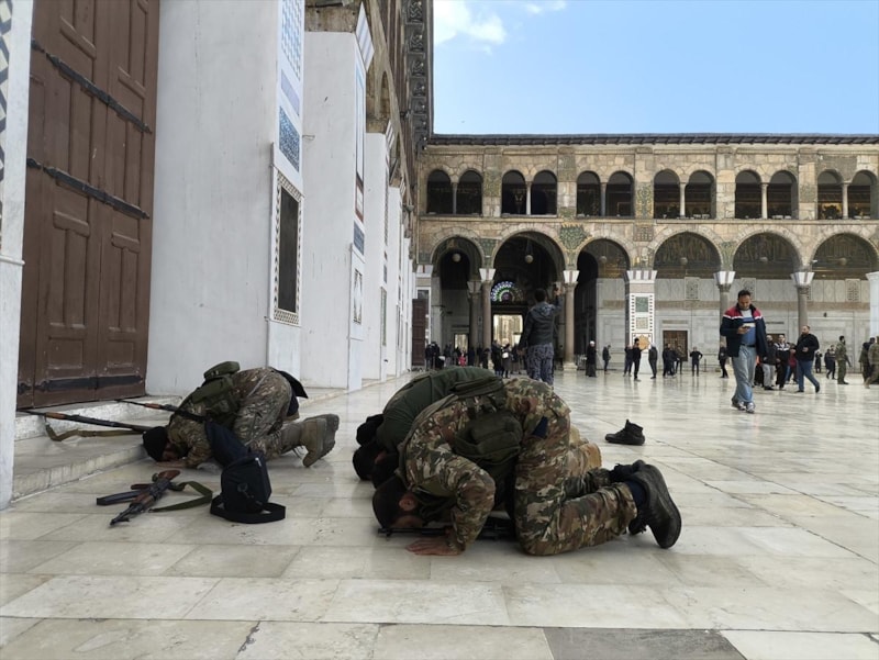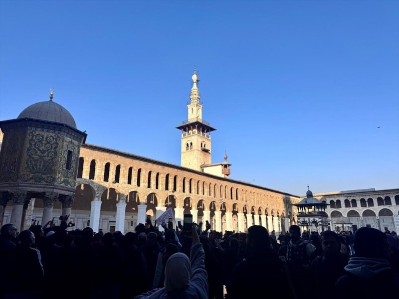 Esad rejiminin düşmesinin ardından sokaklarda sevinç gösterileri yapılırken Suriyelilerin toplandığı Şam Emevi Camii'nden tekbir sesleri yükseldi.