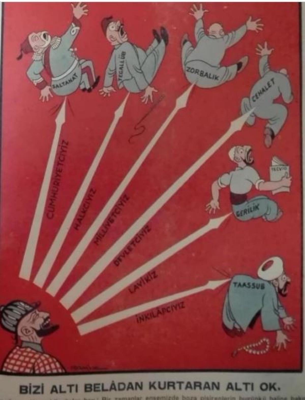 Cumhuriyet döneminde ise Osmanlı’nın seküler çevrelerinden devralınan bu miras daha da ileri noktalara taşınmıştı. O dönemdeki hâkim havaya, salt karikatür üzerinden bakıldığında; evet belki, Hz. Peygamber’in karikatürünü çizmeye cesaret edilememişse de her ama her fırsatta Müslümanları temsil ettiği iddia edilen bir karakter resmedildiğinde, “sevimsiz yüz hatlı, kazma dişli, çatal dilli, yılan başlı” ve benzeri gibi olabilecek en itici figürler şeklinde çizilirdi.
