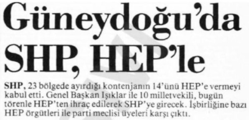 Ümit Yenişehirli, Türk siyasi hayatında bir dönem CHP'nin alternatifi olarak kurulan SHP'nin HEP ile yaptığı seçim ittifakını mercek altına aldı. İşte o yazı...