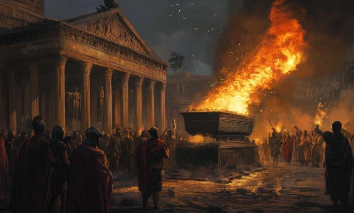 Roma’daki bu uygulamada, mezarın yanına getirilen domuz ya da domuzlar, acımasız bir şekilde çekiçlerle başlarına vura vura kurban edilirdi. Ölen kişi yüksek bir görevde ya da zenginse kurban edilen domuzların sayısı da artardı.