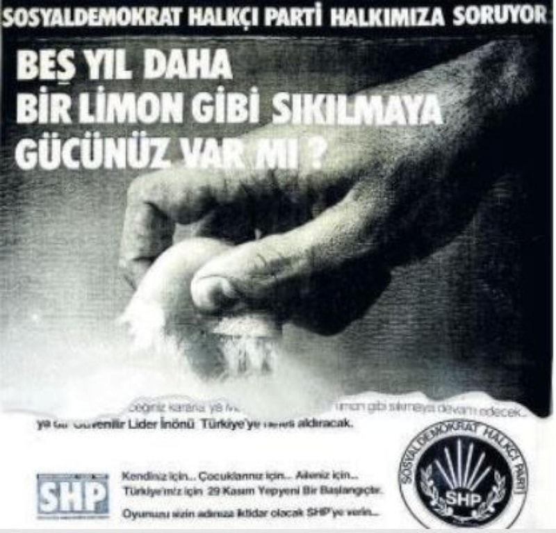 12 Eylül darbesinin ardından kapatılan CHP’nin yerine kurulan Sosyal Demokrat Halkçı Parti ise 1987 seçimleri için hazırladığı propaganda kampanyasında limon kullanmıştı!
