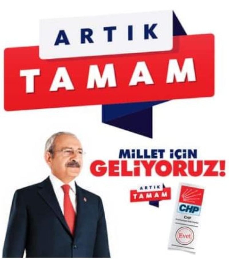 CHP’nin yakın tarihlerdeki bir başka kampanyasında ise “Tamam” ibaresi öne çıkartılmıştı. 2018 genel seçimleri öncesi Cumhurbaşkanı Recep Tayyip Erdoğan, seçimlerle ilgili olarak, “Milletimiz ‘tamam’ derse o zaman çekiliriz” şeklinde bir açıklama yapınca, CHP üzerinde “Tamam” yazan afişleri kampanyasının bir parçası haline getirmişti.