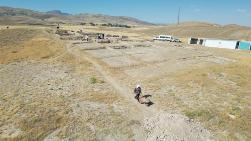 Van'ın Gürpınar ilçesindeki Çavuştepe Kalesi'nin kuzeyinde 9 yıl önce tespit edilen nekropolde çalışan arkeologlar, sıcak ve tozlu havaya rağmen kazı çalışmalarını sürdürüyor.