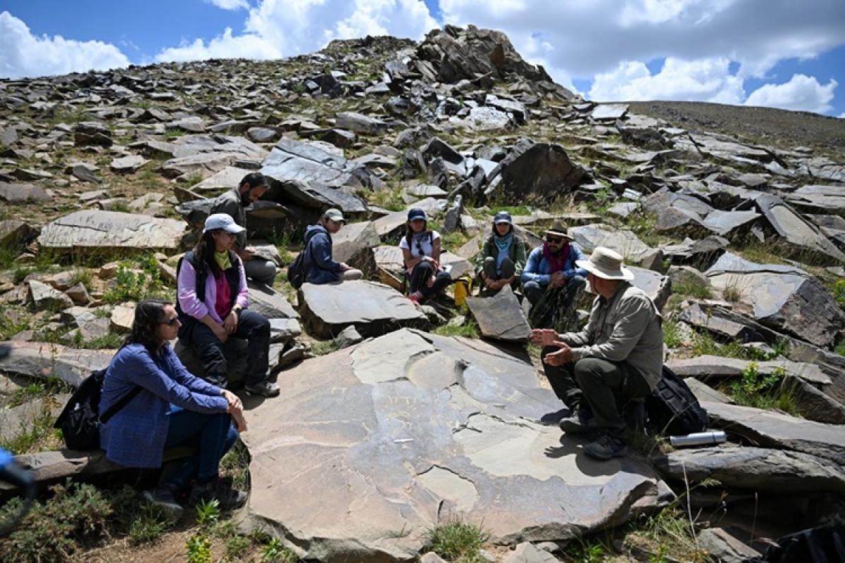 Kültür ve Turizm Bakanlığı Kültür Varlıkları ve Müzeler Genel Müdürlüğü’nün desteğiyle, ilçeye 62 kilometre mesafedeki Beşbudak Mahallesi’nden yola çıkan ekip, 3 bin metre rakımdaki Tirişin Yaylası’nın Kanlı Çeşme mevkisine iki saatlik tırmanışın ardından ulaştı. Arkeolog, antropolog ve sanat tarihçilerinden oluşan 12 kişilik akademik ekip, ilk olarak 1967’de tespit edilen kaya resimleri üzerinde incelemeler yaptı.