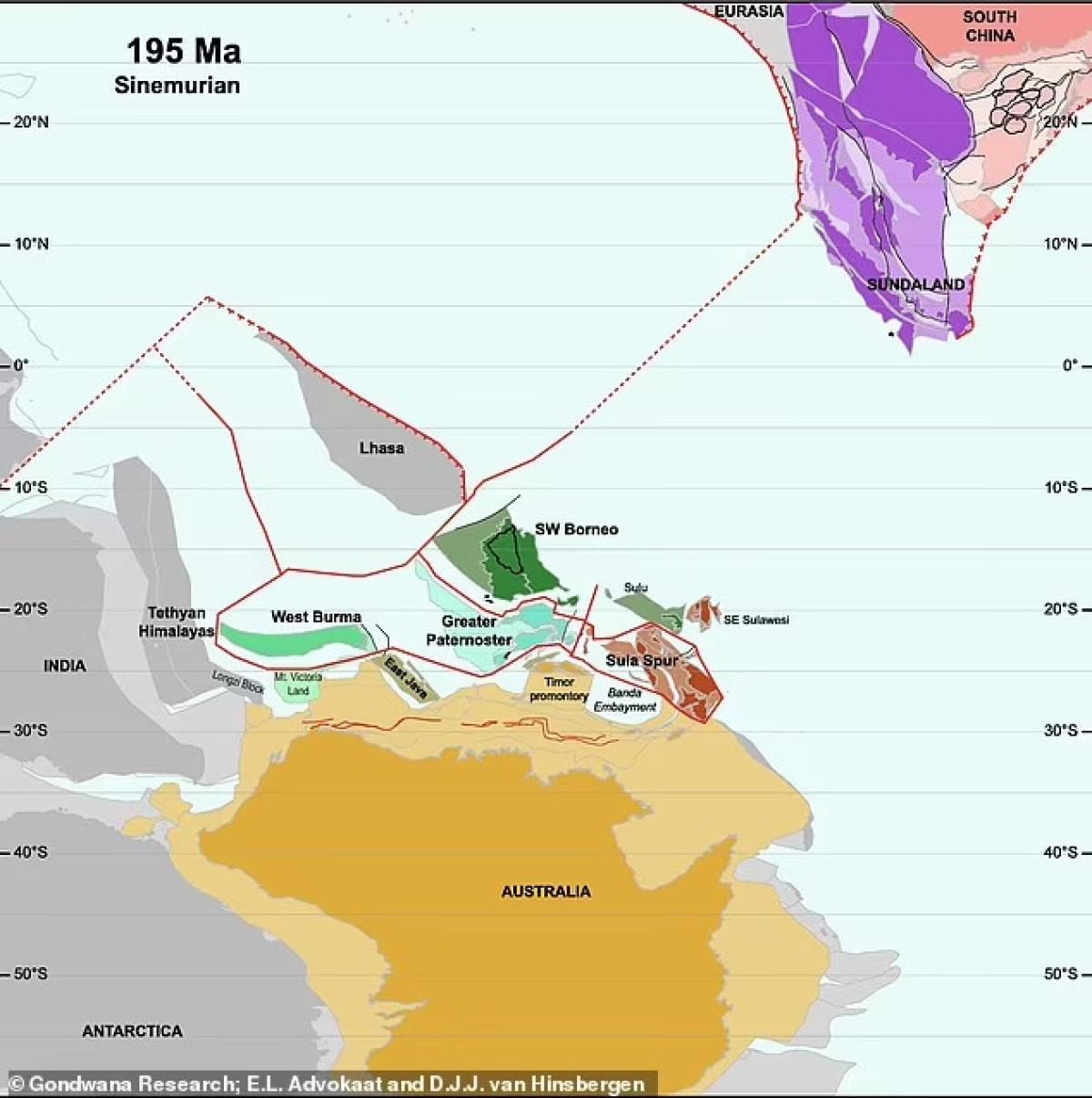 Yerel deniz tabanı boyunca uzanan manyetik ve yapısal jeolojik kanıtlar, dev parçanın, Güneydoğu Asya'ya doğru sürüklenmeden önce, Dünya'nın kabuğunu oluşturan tektonik plakaların kayması yoluyla ayrıldığını ileri sürdü.