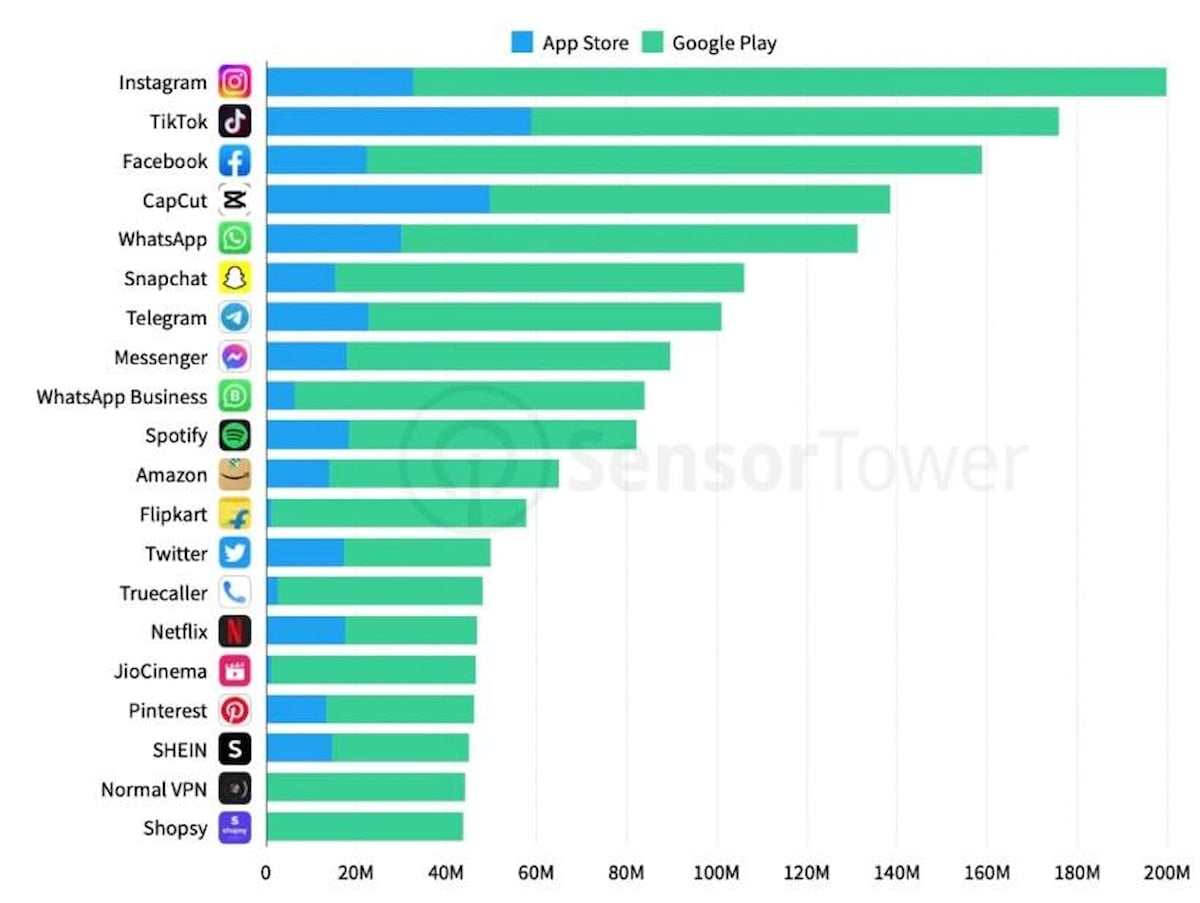 TikTok ve Facebook, sırasıyla dünya çapında 2 ve 3 numaralı uygulamalar olarak Instagram'ı takip etti.