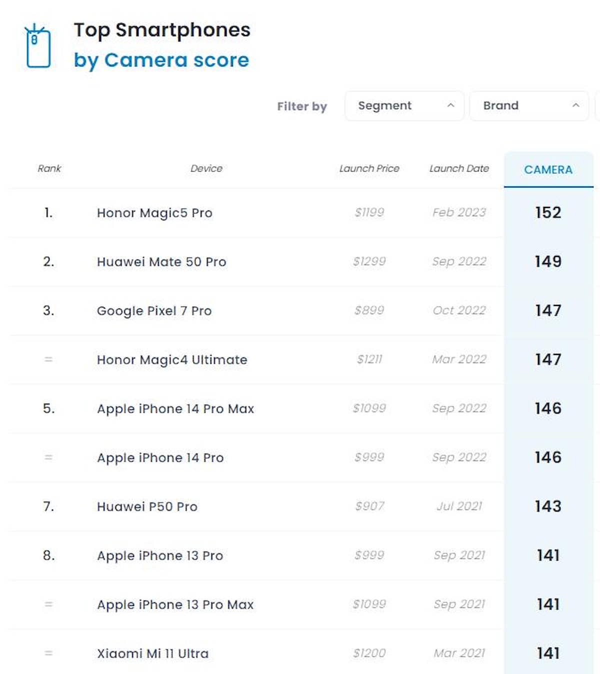 Mobil Dünya Kongresi (MWC) kapsamında dünyanın en iyi kameralı akıllı telefonu olarak çıkış yapan Honor Magic 5 Pro modeli, DxOMark testlerinden 152 puan almış ve zirveye yerleşmişti.