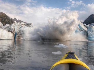 Suda kürek çekerken aniden çıtırtı sesleri duyan iki kanocu, yönlerini değiştirerek sesin geldiği yöne doğru kürek çekti. Ardından hemen önlerindeki dev buzul köprüsü büyük bir gürültüyle yıkıldı ve suya düşen buz parçaları, dev bir tsunami etkisi yarattı. Kanocular ise olayı yara almadan atlattı.